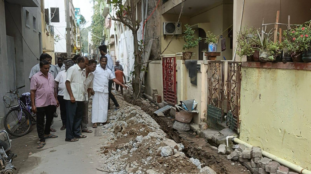 In Nellithope Kannara Street, located in Urulayanpet Ward, Puducherry, the drinking water pipelines were laid over 30 years ago. Due to corrosion and frequent breakages, the residents have been facing irregular water supply issues for a long time. Responding to their repeated requests, Urulayanpet Constituency MLA Thiru. G. Nehru (alias Kuppusamy) took proactive steps to address the problem.
